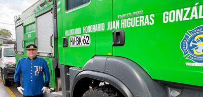 A contar de ayer sábado, el carro bomba forestal de la Tercera Compañía de Bomberos de Panguipulli lleva el nombre del voluntario honorario Juan Higueras González. Con ello se rindió un sentido homenaje a sus 35 años de labor en esa unidad bomberil.