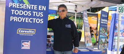 Son más de 70 las empresas y marcas presentes en la 2da. Expo Ferretera de Ferretería Jaramillo, entre ellas Codelpa, para sus marcas de pinturas Ceresita - Sipa - Soquina - Chilcorrofin y Jotun, su representante en la expo, Bernardo Toledo Leiva, miembro del Área Técnica de Codelpa, dijo que “esta es una linda expo, que llama la atención del público, es una oportunidad para que la gente venga y haga preguntas, nosotros respondemos sus dudas, por ejemplo, en qué se pueden utilizar los diversos productos. En Ferretería Jaramillo están nuestros productos.