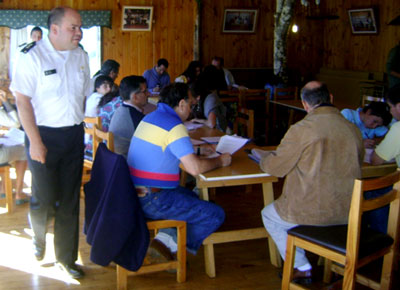 Capitán de Puerto, Eric Meza en la última toma de exámenes 09/10/09 La Capitanía de Puerto de Panguipulli informa que el día 02 de Noviembre del presente año se efectuará el segundo período de examinación para obtener el título de Patrón de Nave Menor hasta 50 Toneladas de Registro Grueso. De acuerdo a los antecedentes recabados por El Diario Panguipulli.cl, para ello se deberá rendir el respectivo examen Teórico. Los postulantes tendrán plazo para inscribirse hasta el día 15 de Octubre directamente en la Capitanía de Puerto de Panguipulli. La Autoridad Marítima invita a las personas interesadas en este proceso a realizar sus consultas directamente en la “Capitanía de Puerto”; FONO 063-361344, dirección O”Higgins 01 Panguipulli o al correo electrónico cppanguipulli@directemar.cl. Según lo informado por Eric Meza Pérez, Sargento 2do de Litoral, Capitán de Puerto de Panguipulli. |