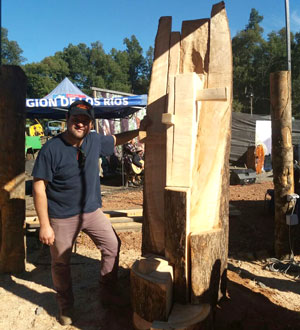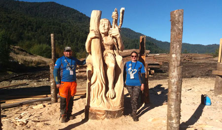 Segundo lugar: Américo Robles, de Isla Negra. Premio, $600.000. Mauricio Pichuante reconoce que se sintió muy cómodo durante los tres días de competencia, y que ese tiempo le sirvió además para conocer a otros escultores del país e intercambiar experiencias, especialmente con el destacado artesano en madera Filemón González, quien fue homenajeado durante la premiación del concurso por sus 53 años de trayectoria profesional. “Con don Filemón pude conversar largo y tendido, lo escuche bastante y sus palabras me sirvieron mucho para orientar mi trabajo. Creo que es muy importante escuchar a los mayores, a las personas que tienen cana, oírlos y aprender de ellos”. Confiesa que el concurso no lo vivió tanto como una competencia, sino más bien como una oportunidad de apoyo y ayuda a sus pares, para conocerse entre ellos. Sobre el primer lugar obtenido, Pichuante recurre a los recuerdos de su paso por el fútbol profesional, cuando vistió las casaquillas de arquero en Unión Española, O'Higgins y Cobreloa, para definir la actitud que se debe tener para enfrentar desafíos como los de esta competencia. “Uno entra a la cancha a ganar sin cuestionar al rival, con la actitud de triunfar y de hacerlo bien, como el buen pehuenche que soy, de una cultura que jamás ha sido derrotada. Yo piso en el lugar y me siento ganador”. Revela que este es el cuarto concurso que gana en el año tras triunfar en competencias de similares características en Temuco, Llanquihue, Nancahua y ahora en Huilo Huilo. La clave del éxito del concurso Tallando el legado histórico del territorio, Pichuante la atribuye, entre otras razones, al apoyo y colaboración de su esposa Scarlett González Olmo, quien lo acompañó durante los tres días de competencia, prestándole apoyo logístico y orientación estética sobre cómo desarrollar mejor el trabajo. “Con ella somos un solo equipo, tanto aquí como en la casa”, señala sonriendo. Tras su triunfal paso por Neltume, Mauricio y Scarlett ahora preparan maletas para viajar el próximo mes a Alemania a participar en la Copa Mundial de esculturas con motosierra, donde piensan repetir la experiencia vivida recientemente. “Allá representaremos no sólo a Chile, sino a toda Sudamérica”, asegura confiado. RECUADRO