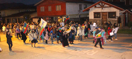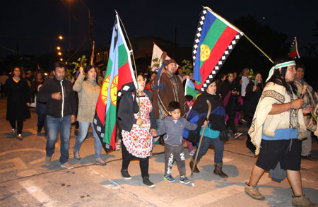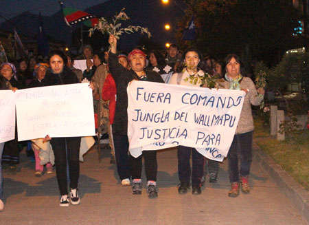 Con el correr de los minutos los mapuches marcharon hacia el frontis de Quinta Comisaría de Carabineros de Panguipulli para exteriorizar su protesta en contra de la policía, luego enfilaron hacia la Ruka Mapuche ubicada a un costado de la Plaza Bernardo O”Higgins, para posteriormente disolverse la manifestación. |