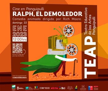 El domingo 22, a las 12:00 horas, tendremos una presentación de “Cine en Panguipulli” con la proyección de la película para toda la familia: “Ralph, el demoledor” (2012) la comedia animada de Disney dirigida por Rich Moore.