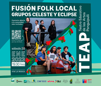El sábado 28 se realizará “Fusión Folk Local” una presentación protagonizada por artistas de Panguipulli y sus alrededores. En esta ocasión será el turno de los grupos Celes y Eclipse.