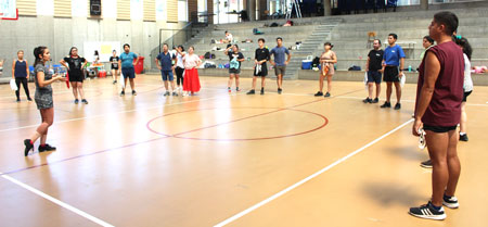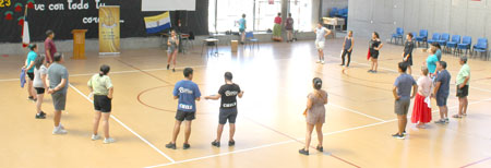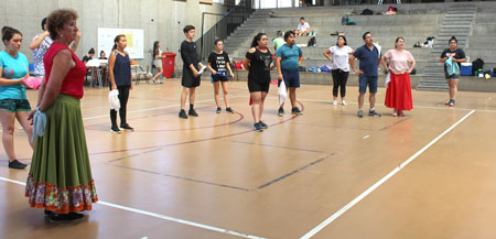 Uno de los talleres es el de Danzas Argentinas que dicta la reconocida profesora trasandina Alejandra San Martín, quien ayer martes enseñó las figuras geográficas del Pericón.