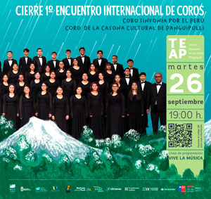 Mañana 26 de septiembre, a las 19:00 horas, se realizará el Primer Encuentro Internacional de Coros, el que reunirá al Coro de La Casona Cultural de Panguipulli y al Coro Sinfonía por el Perú, un evento gratuito para toda la familia.