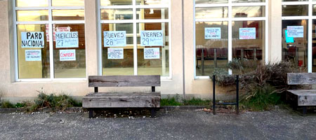 En las ventanas y el frontis del Centro de Salud Familiar de Panguipulli aparecieron carteles que visibilizaron el ánimo de los funcionarios plegados a la movilización.
