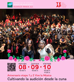 Luego, el viernes 10 de octubre a las 11:00 horas, será la función abierta a público de la actividad “Cultivando la audición desde la Cuna”, una jornada de cuentos cantados para disfrutar en familia, en el marco del aniversario de la etapa 1 y 2 del programa Vive la Música. La función es gratuita y está especialmente pensada para niños y niñas de 0 a 6 años, junto a sus familias y cuidadores.