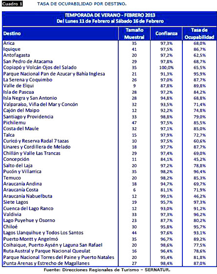 Según Informe del Servicio Nacional de Turismo
