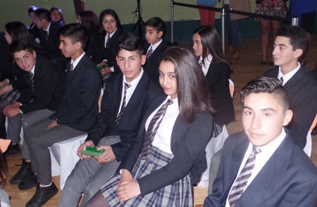 El colegio agradeció a los niños músicos de la Banda Escolar CESS: Consuelo Soler, Darlyn Fernández, Patricio Mellado, Guido Ojeda, Camila Obando, Nataly Carrasco, Constanza Rocha, Alex Zapata, Kevin Sepúlveda, Benjamín Rosas, Matías Muñoz, Matías Carrillo, Jeffersson Carrillo, Francisco Estay, Matías Aedo, Ángela Rosales, Axel Cuevas, Ricardo Trecañanco, Yanira Ayulef, Contanza Álvarez y Benjamín Valdebenito. Hizo entrega de la distinción el profesor GRAN PREMIO ESPÍRITU SAN SEBASTIÁN