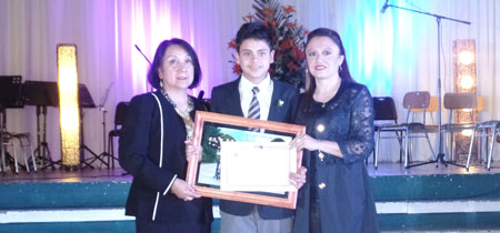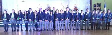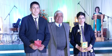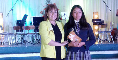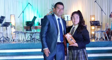 Esfuerzo, dedicación, responsabilidad, solidaridad y respeto son los valores que se inculcan a diario en los alumnos del Centro Educacional San Sebastián de Panguipulli. Recibieron este importante premio los estudiantes: María José Ocares Rainqueo y Gabriel Coloma Peña. Hizo entrega del premio la Directora Mariela Anabalón Vargas.