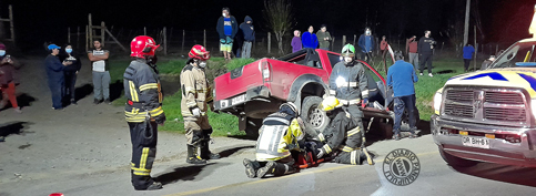 COLISIÓN Y VOLCAMIENTO CAMINO A HUERQUEHUE MOVILIZÓ A EQUIPOS DE EMERGENCIA DE PANGUIPULLI