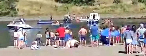 OPORTUNA REACCIÓN DE PERSONAS A BORDO DE CATAMARÁN PERMITE AUXILIAR A TEMERARIO BAÑISTA EN LA PLAYA DE CHAUQUEN, COMUNA DE PANGUIPULLI