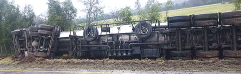 SEMIVOLCAMIENTO DE CAMIÓN EN SECTOR PUYEHUE CAMINO A LOS TAYOS MOVILIZA A EQUIPOS DE EMERGENCIA DE PANGUIPULLI