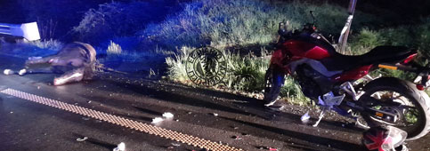 IMPACTO DE CAMIONETA CON ANIMAL VACUNO EN LA RUTA CH-2023, SECTOR COZ-COZ, MOVILIZÓ A EQUIPOS DE EMERGENCIA DE PANGUIPULLI