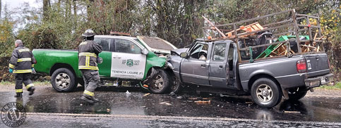 COLISIÓN ENTRE DOS VEHÍCULOS EN LA RUTA T-39, SECTOR VILLA PALGUÍN, MOVILIZÓ A EQUIPOS DE EMERGENCIA DE PANGUIPULLI